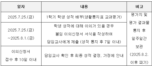 안녕하십니까? 오늘 1학기 학생 생활통지표가 배부됩니다.
